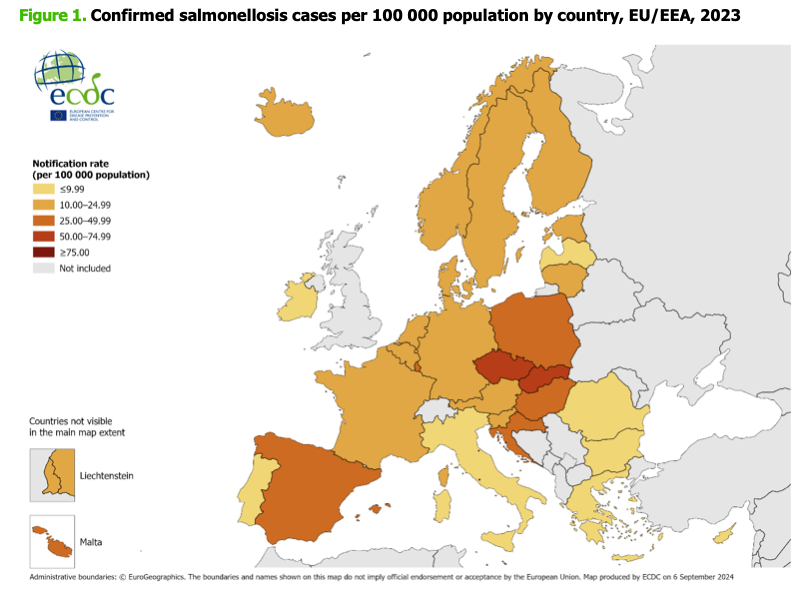 El Centro Europeo para la Prevención y Control de Enfermedades (ECDC) ha publicado recientemente el INFORME EPIDEMIOLÓGICO ANUAL DEL ECDC SOBRE SALMONELLOSIS. 2023.