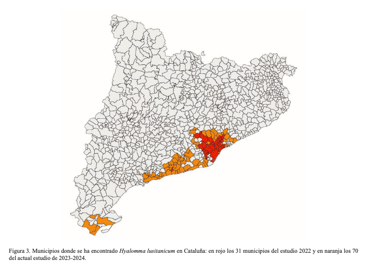 En la publicación se aportan los resultados de diversos muestreos realizados entre 2023 y 2024 para la detección de la garrapata Hyalomma lusitanicum en Cataluña.