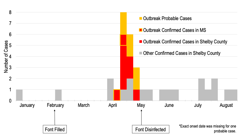 En mayo de 2023, el Departamento de Salud del Condado de Shelby (SCHD) de (Tennessee - USA), inició una investigación al identificar a 3 personas con enfermedad del legionario cuya única exposición común fue asistir a la misma iglesia durante los 14 días anteriores al inicio de la enfermedad.