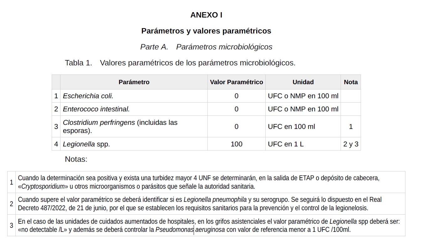 Con las nuevas normativas de la Directiva 2020/2184 y el Real Decreto 3/2023 sobre requisitos el agua de consumo se exige el control de P. aeruginosa específicamente en las unidades de cuidados aumentados o intensivos de hospitales